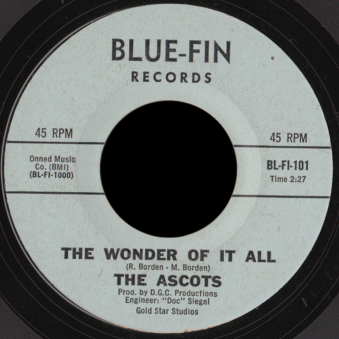 101 – Ascots: The Wonder Of It All (R. Borden, M. Borden) / I Won’t Cry (Al Politano) (engineer Doc Siegel at Gold Star Studios, Onned Music BMI)