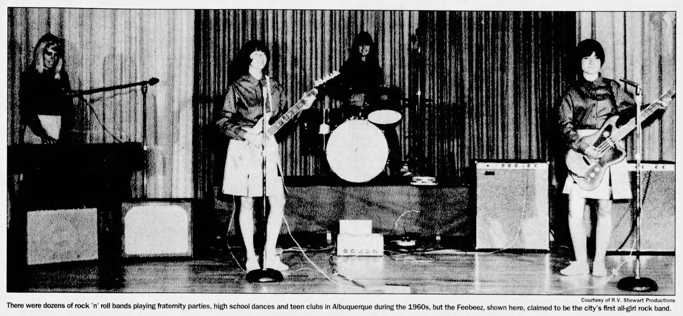 HAPPY BRITHDAY: [sic] It’s the happy birthday time for the Feebeez, an Albuquerque rock and roll band that should add zest to any bandstand – a bevy of beauties is making the music.