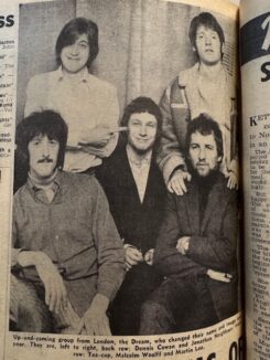 However, Torpey (who’d started out in a band with Mick Tucker in 1962) only lasted a handful of months and by late January 1968, Frewer’s friend Robin Box had succeeded him on lead guitar. According to an article in the Harrow Observer, dated 24 October 1969, Box had previously played with The Phantoms and Five’s Company.