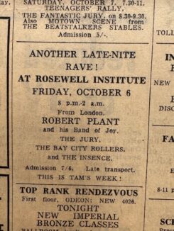 15 August 1967 – Palace Ballroom, Aberdeen, Scotland with The Rite Tyme (Aberdeen Evening Express)