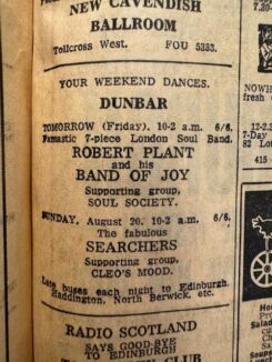 18 August 1967 – Victoria Ballroom, Dunbar, Scotland with Soul Society (Edinburgh Evening News supplied by Andy Neill)