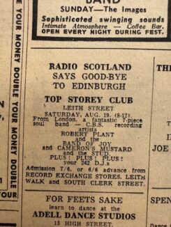19 August 1967 – Top Storey Club, Edinburgh, Scotland with Cameron’s Mustard and The Stud (Edinburgh Evening News supplied by Andy Neill)