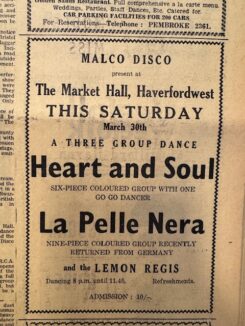30 March 1968 – Market Hall, Haverfordwest, Pembrokeshire, west Wales with La Pelle Neva and Lemon Regis (Pembroke County & West Wales Guardian)