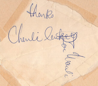 I was astonished to find 11 snapshots taken during their time at the club, along with autographs collected from each. Hilariously, Charles Larkey is noted as “Tony” on the album pages, though he signed his autograph correctly as Charlie Larkey.