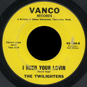 Some of the Twilighters may have attended the Washington State School for the Blind in Vancouver, Washington, not far from Portland, Oregon. Their records are often found with braile lettering on the covers or labels. They released at least this 45 and two LPs on Vanco.