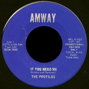 The Profiles – “If You Need Me” (Golden & Bateman) / “Please Come Back” (Marion Howard and Mike Howard, Playridge, BMI) 825M-5840, T4KM-5840/1, first half of 1966, Mel-O-Dee Entertainment, Inc.)