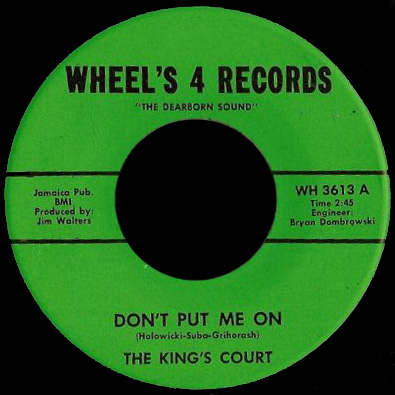 The Wheels 4 Records label had a tag, “The Dearborn Sound”, but since that city is just west of Detroit the Kings Court and other bands on the label could have come from anywhere in the area. The records I’ve seen list Bryan Dombrowski as engineer, and I’ve also read he owned the label, though I see Jim Walters is credited as producer on several Wheels 4 sides.