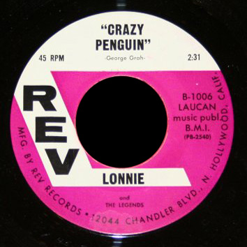 Rev 45-1005 / 45-1006 – Lonnie & the Legends – “Penguin Walk” / “Crazy Penguin” (George Grah, Laucan Music BMI, with picture sleeve)