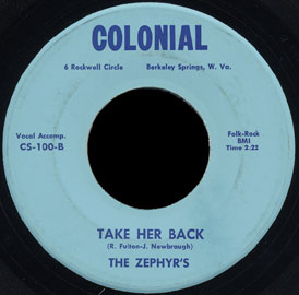 Take Her Back has been released on several compilations. Most recently by Arf Arf Records out of Massachusettes ….plus there have been some other previuosly unrelased material by The Zephyrs put out in recent years from live performances that is much more upbeat than the 45 rpm record.